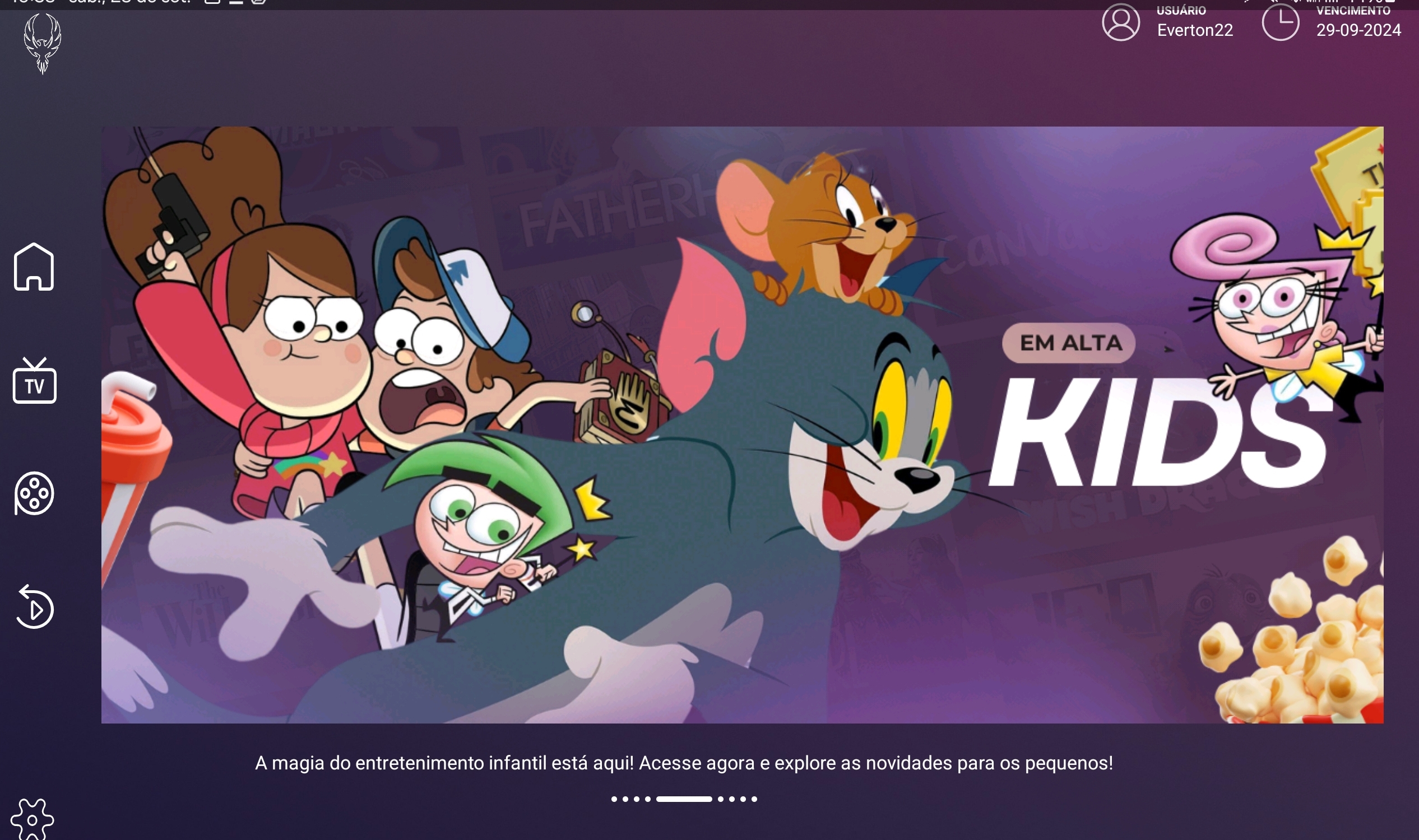 de VOD , e uma seção de recomendações de vídeos para